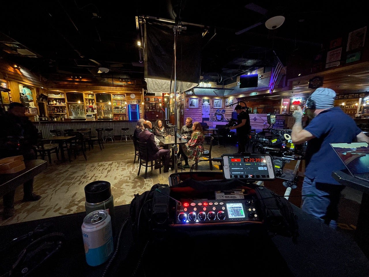 The walls of the Music City Bar and Grill served as a silent testament to the legends of country music, each photo and piece of memorabilia a mosaic piece in Nashville’s storied tapestry. Under the watchful eyes of icons like Waylon Jennings, Merle Haggard, George Jones, Dolly Parton, and Hank Williams, we orchestrated our setup, a concerto of cables and cameras.